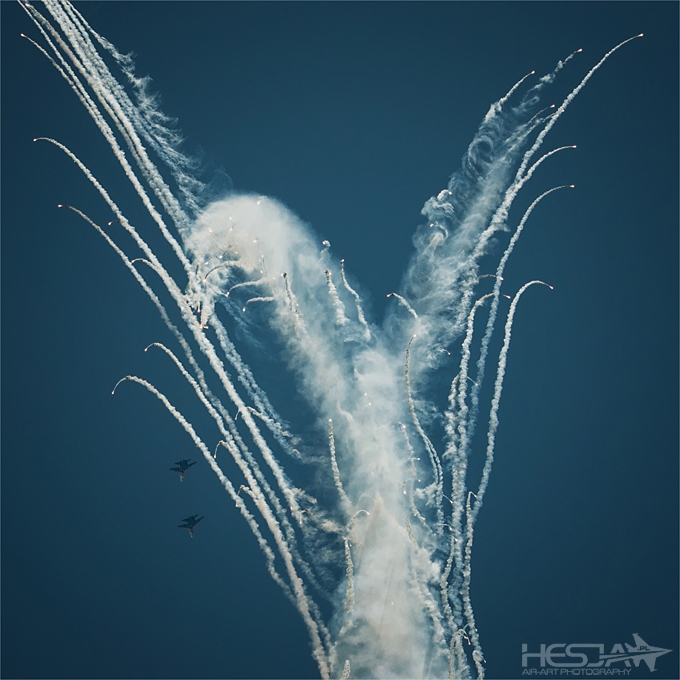 Podczas gdy fala upaÅ‚ów przewalaÅ‚a siÄ™ przez EuropÄ™, my postanowiliÅ›my pojechać na pokazy w jej najbardziej gorÄ…ce rejony! To bowiem WÄ™gry byÅ‚y na poczÄ…tku sierpnia najcieplejszym krajem naszego kontynentu. Prognozowana temperatura miaÅ‚a dochodzić do 40 kresek! ByÅ‚em ciekaw jak wytrzymamy taki skwar stojÄ…c w zasadzie caÅ‚y dzieÅ„ na otwartej przestrzeni, czy może raczej na patelni? Na miejscu okazaÅ‚o siÄ™, że rzeczywiÅ›cie nie byÅ‚o lekko. ZwÅ‚aszcza, że nie zrezygnowaliÅ›my z naszych „tradycyjnych zachowaÅ„”. A stanie caÅ‚y dzieÅ„ pod wpÅ‚ywem ColiL, w takim upale, bez odrobiny cienia - byÅ‚o zadaniem dla mega twardzieli! DaliÅ›my oczywiÅ›cie radÄ™, choć byÅ‚o to chyba najbardziej upalne fotografowanie jakie w życiu przeżyÅ‚em. Nie wiedziaÅ‚em też, że jestem w stanie wypić tyle wody jednego dnia! Co ciekawe – mimo tak wielkiego upaÅ‚u powietrze byÅ‚o w miarÄ™ czyste i termika bardzo nie przeszkadzaÅ‚a. MówiÄ…c zaÅ› o powietrzu w ujÄ™ciu lotniczym to trzeba przyznać, że nie byÅ‚o jakiejÅ› wielkiej rewelacji, ale też nie byÅ‚o bardzo nudno. Gwoździem programu byli oczywiÅ›cie Witjazi na swoich niemÅ‚odych już Su-27. PiszÄ™ "niemÅ‚odych", gdyż mieliÅ›my okazjÄ™ być naprawdÄ™ blisko tych samolotów i myÅ›lÄ™, że maÅ‚e odÅ›wieżenie choćby powÅ‚oki lakieru na pewno by siÄ™ im przydaÅ‚o :) Niezapomnianym przeżyciem byÅ‚o obserwowanie i sÅ‚uchanie z bliska uruchamiania silników i wykoÅ‚owywania tych piÄ™knych i majestatycznych samolotów. Trzeba przyznać, że na imprezie tej byÅ‚y bardzo dobrze zorganizowane punkty dla fotografów. ZnajdowaÅ‚y siÄ™ one na dwóch kraÅ„cach strefy dla publicznoÅ›ci, co akurat pasowaÅ‚o by każdego dnia fotografować z innej strony. Gdy dodam, że w dzieÅ„ treningów fotografowaliÅ›my zza ogrodzenia, to osiÄ…gnÄ™liÅ›my prawie peÅ‚niÄ™ miejscówkowego szczęścia :)