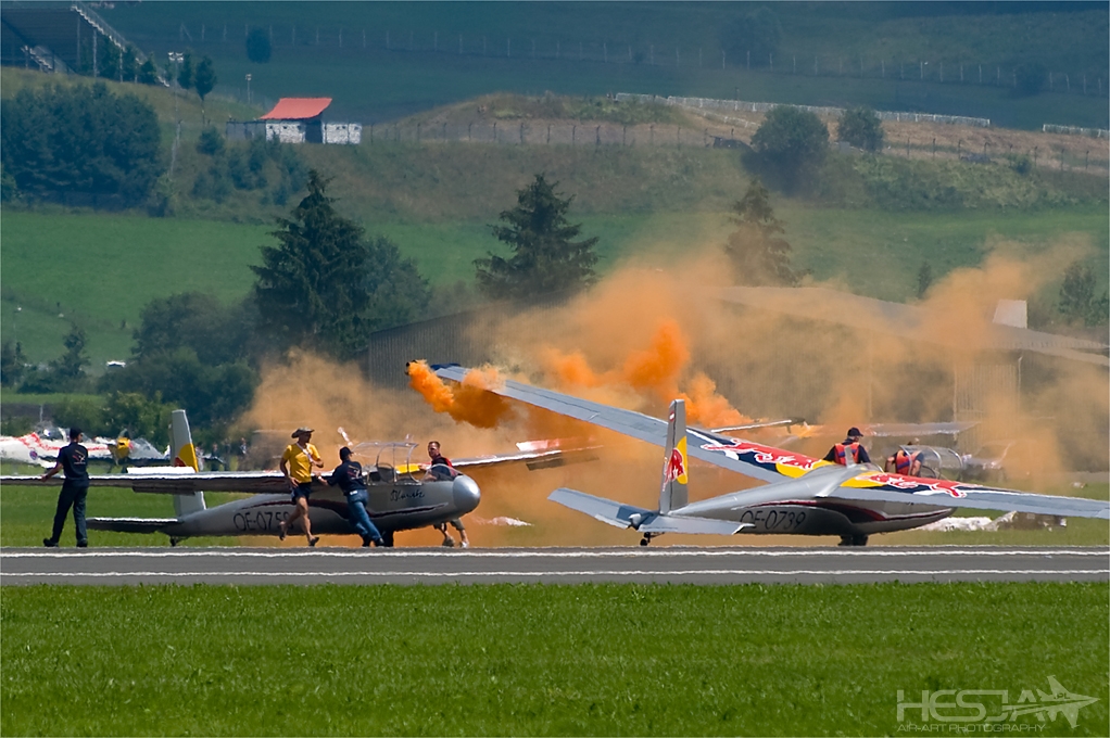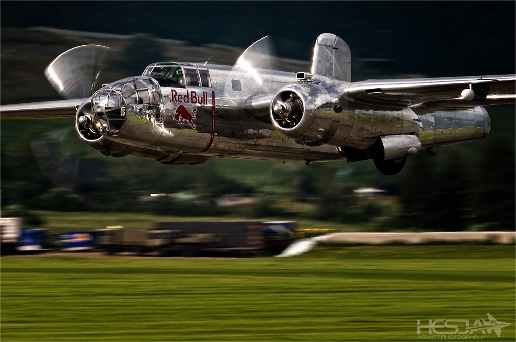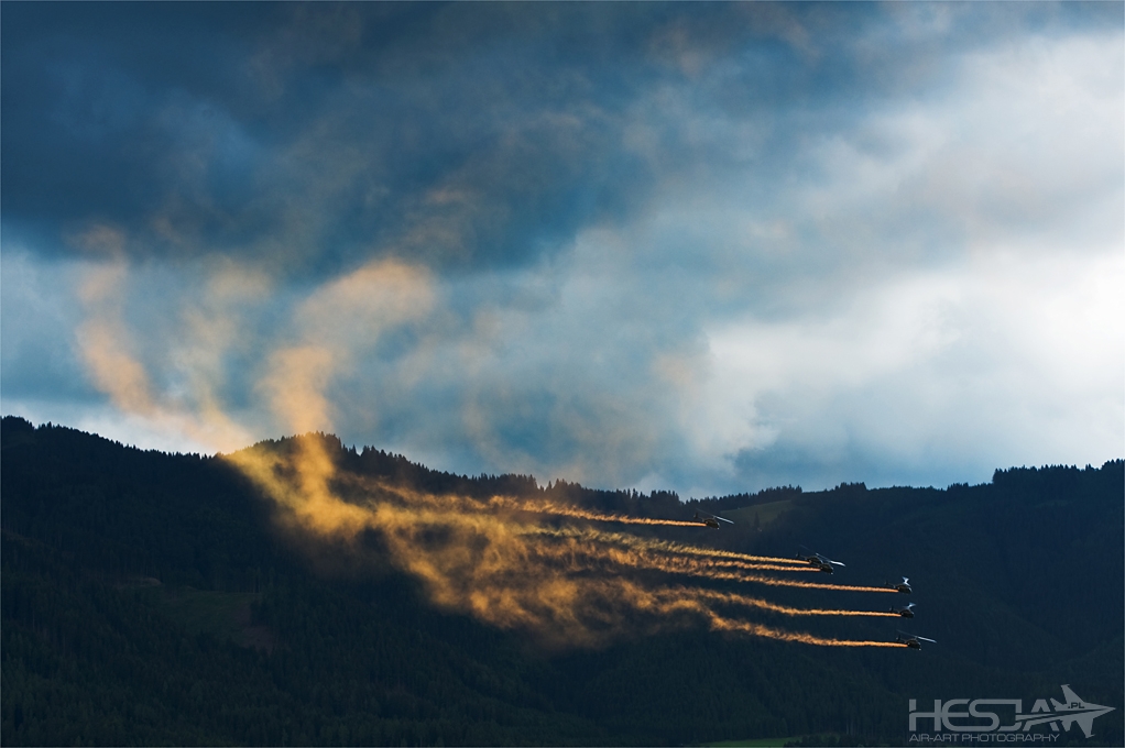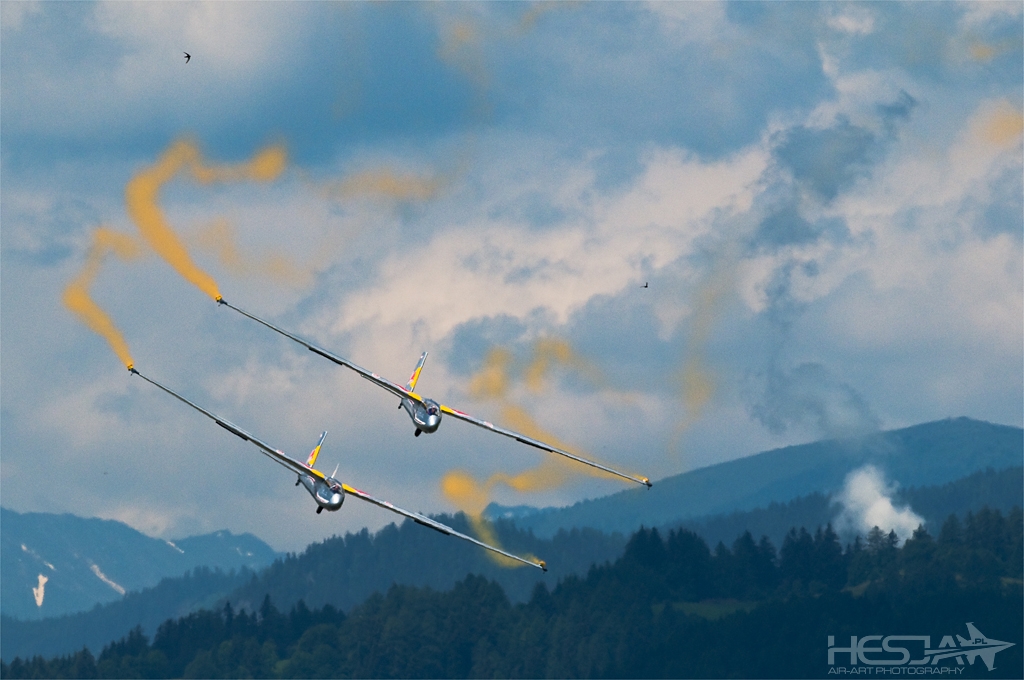 To moja pierwsza wizyta na AirPower w Zeltweg i na pewno nie ostatnia. Od samego początku pokazy miały spory rozmach i były dobrze zorganizowane. Miałem wrażenie, że cały czas wiem wszystko co powinienem o nich wiedzieć od momentu pierwszego kontaktu z internetową stroną pokazów. Na samym miejscu w Austrii okazało się, że jest jeszcze lepiej. Oprowadzano nas gdzie chcieliśmy, karmiono, informowano no i... nade wszystko pojono tradycyjnym (hihi) napojem Austriaków czyli Red Bullem w jego wszystkich możliwych odmianach :) Do tej rewelacyjnej organizacji doszły jeszcze takie zalety jak: kapitalna alpejska sceneria – chwilami bardzo podobna do tej z Axalp, spora liczba maszyn biorąca udział w imprezie, ciekawe miejsca dla spotterów do fotografowania, niesamowita wręcz pogoda, która zmieniała się co chwilę dając coraz to inne tła dla samego lotnictwa no i kilka gwoździ programu. Niesamowite wrażenie zrobiło odbijanie lotniska oraz zmuszenie Herkulesa do lądowania przez dwa Eurofightery. Swoją drogą – piękne samoloty! Piękny pokaz zrobili Turkish Stars i o dziwo równo latający Potrouille Suisse :) Oczywiście nie obyło się bez show Latającego Holendra (Sheika), który zaskoczył nas dwa razy. Raz już w czwartek, kiedy dojeżdżaliśmy do lotniska a on pojawił mi się w lusterku samochodu :) a dwa niestety w sobotę, kiedy robił pośpieszny pokaz zanim my dobrnęliśmy do strefy spot1. Bardzo pięknie prezentowały się stare maszyny z P-38, B-25, Me-109 czy Jak-3U na czele. Pokazy baaardzo udane też fotograficznie, chociaż mam dziwne wrażenie, że sporo zdjęć zjadła mi termika panująca w powietrzu. Na szczęście kilka sztuk udało się obronić więc zapraszam na... AirPower by hesja :)